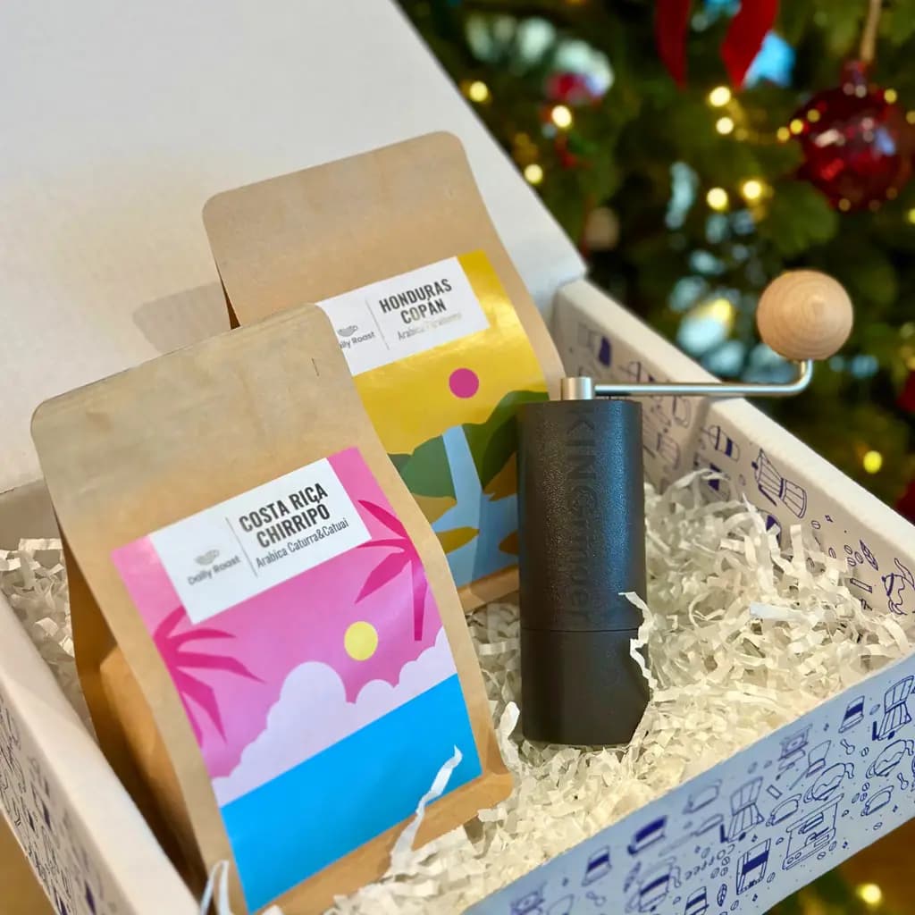 Zestaw startowy z młynkiem KINGrinder P2 i świeżo paloną kawą specialty – idealny prezent na każdą okazję dla miłośnika kawy 🎁